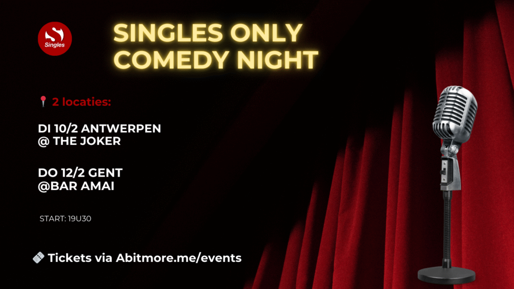 Ben je single en klaar om eens goed te lachen met jezelf, je liefdesleven… of het gebrek daaraan? In samenwerking met AbitMore organiseert Singles niet 1 maar 2 Comedy Nights for Singles in februari 2026.